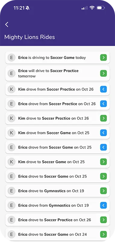 Поддерживайте баланс и справедливость в вашем совместном транспорте с помощью комплексной функции отслеживания истории Kid Hop, разработанной для обеспечения видимости вклада каждого участника: