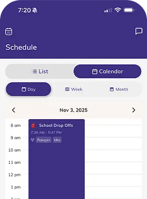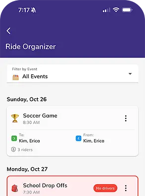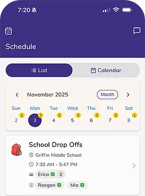 Visualize all your carpool events in a monthly, weekly, or daily calendar format for easy planning and scheduling.