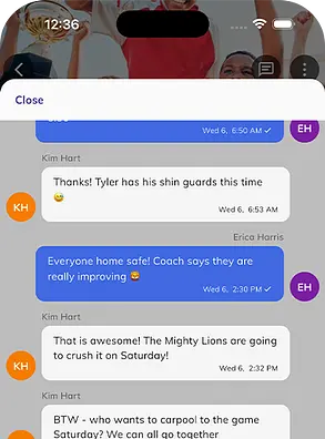 Keep all carpool conversations in one place with real-time messaging that eliminates the need for separate group texts and WhatsApp threads.